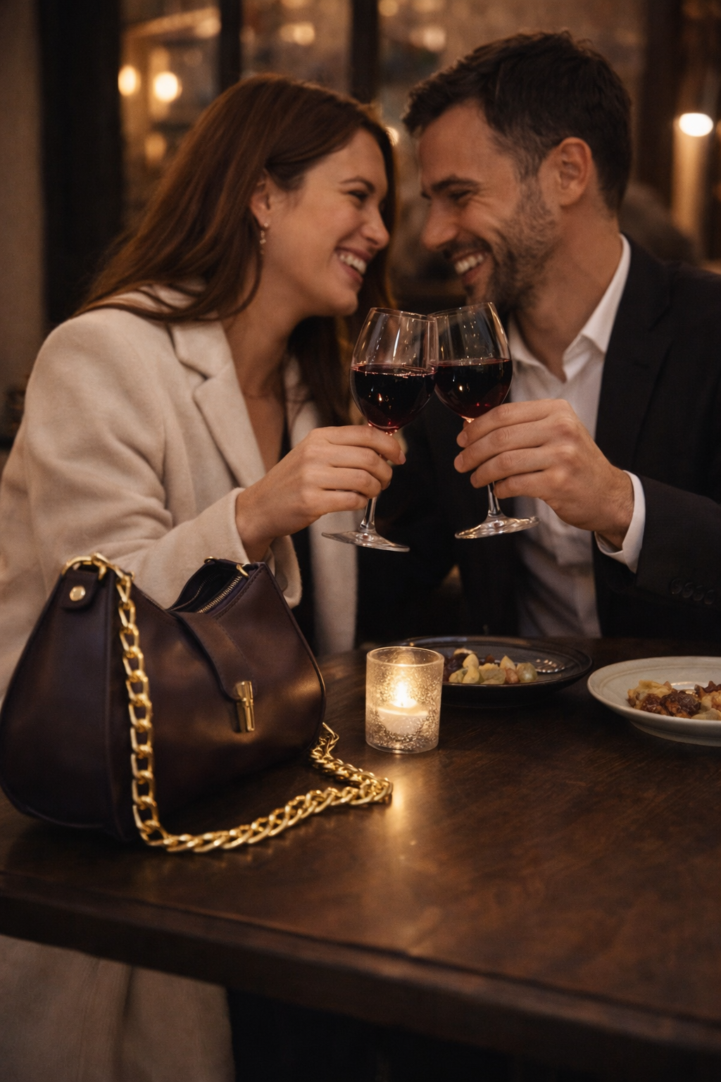 Deep eggplant tones meet soft, feminine elegance in this beautifully crafted bag. Finished with delicate gold detailing, it’s the perfect companion for candlelit dinners and nights that feel a little magical.