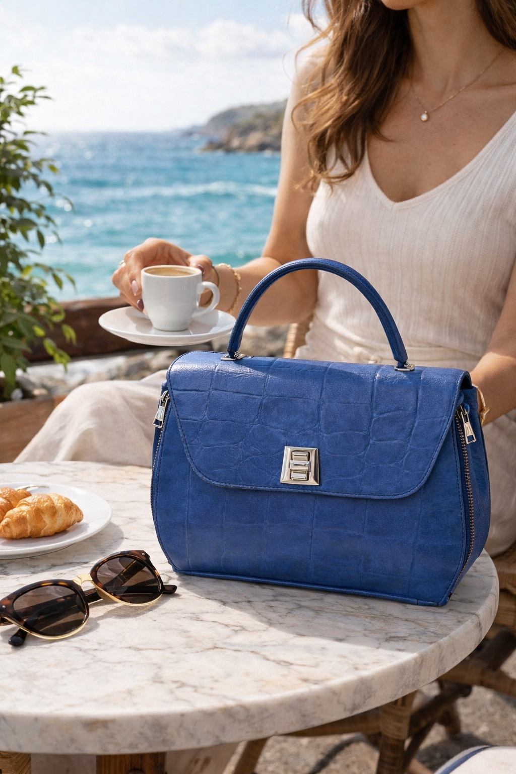 Designed to stand out, this bag features rich croc-embossed leather and thoughtfully placed zippered corner details that add a unique, architectural touch. The padded handle ensures comfort when carried by hand, while the adjustable crossbody strap allows for effortless, hands-free styling.